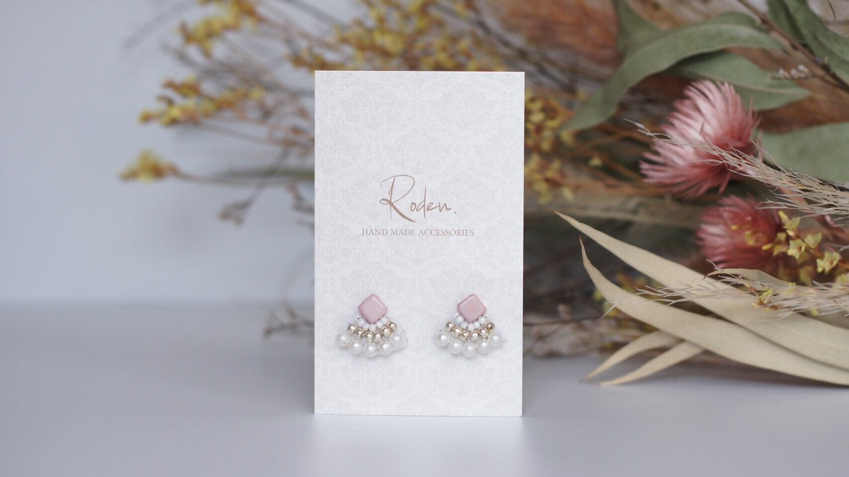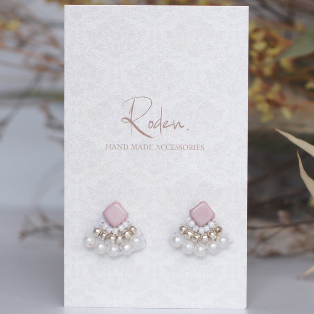 パステルピンク色のチェコビーズと白色コットンパールがコーディネートを華やかにしてくれるアクセサリーです。